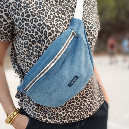 Encore plus engagés, nous avons développé un modèle unique en jean 100 % upcyclé, conçu à partir de jeans collectés localement ou en collaboration avec la marque française Rica Lewis.