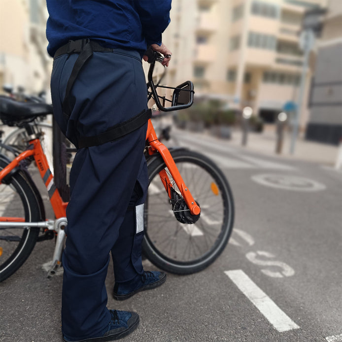 Pas besoin de retirer vos chaussures ou vos vêtements : vous clipsez votre sur pantalon de pluie moto ou vélo en un geste, et vous êtes protégé.e contre la pluie et le vent.